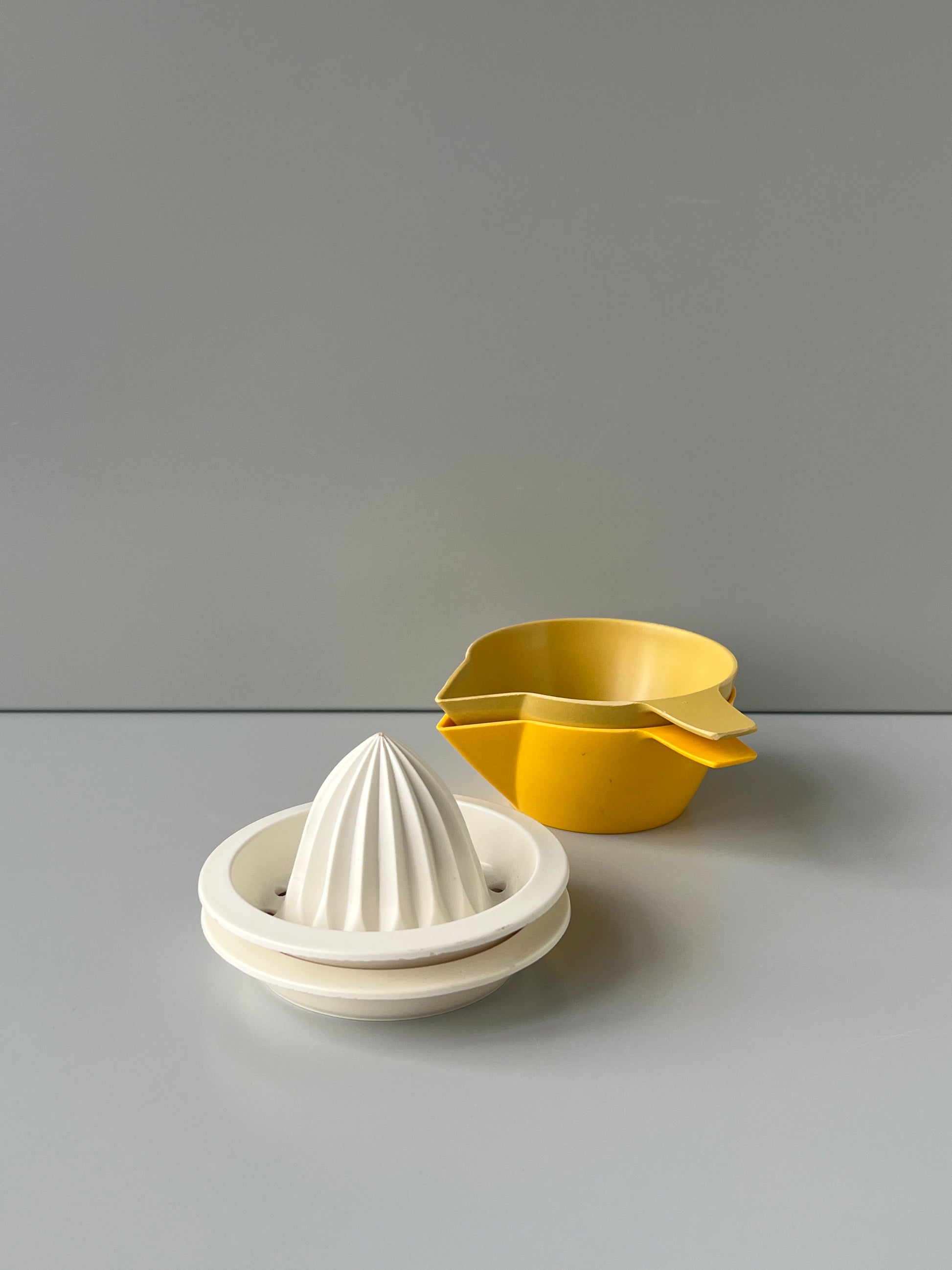 Hergestellt aus robustem Meladur-Kunststoff überzeugt sie mit klarer Form, ergonomischem Griff und ikonischer Farbgebung in drei Gelbtönen.