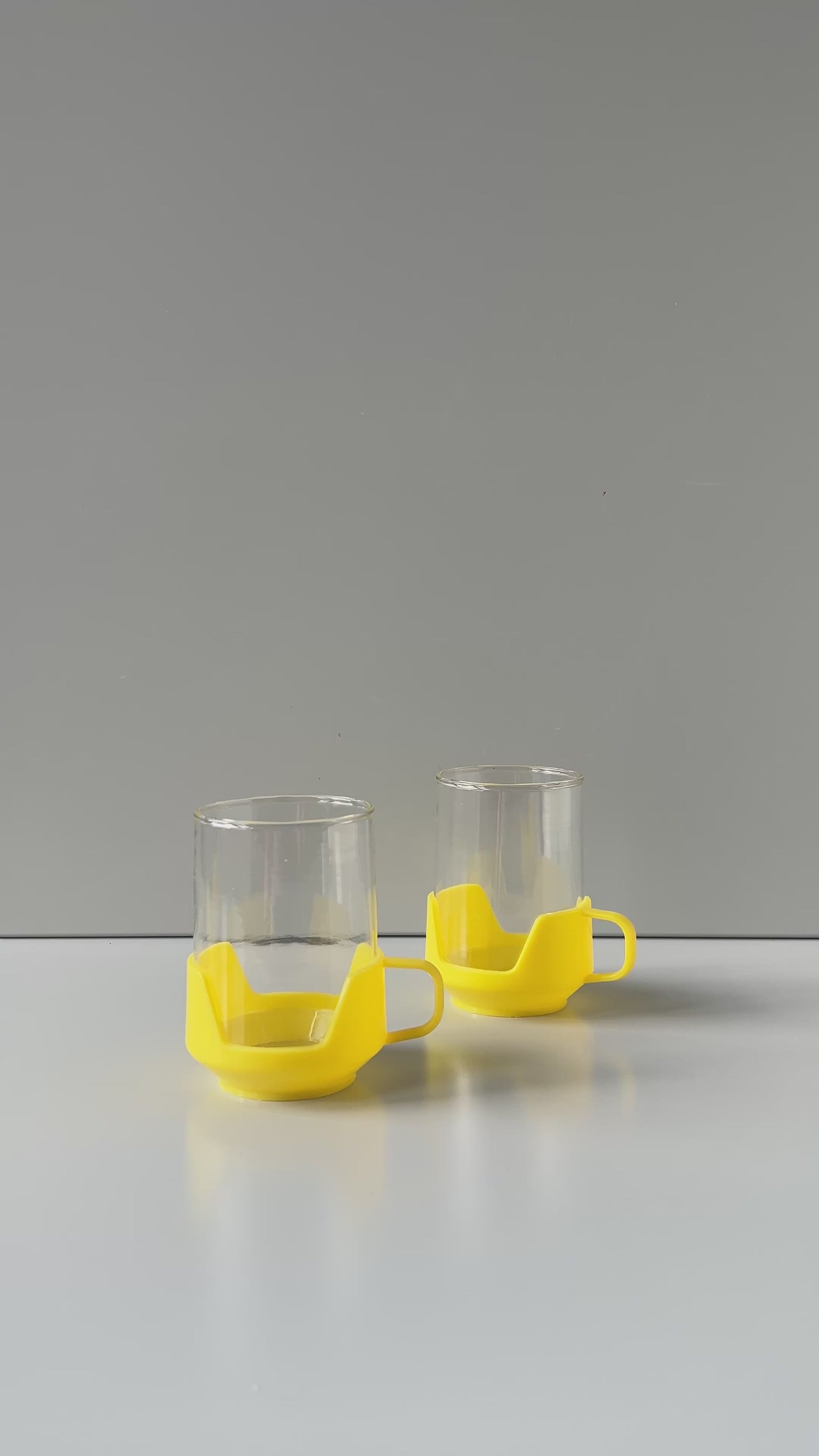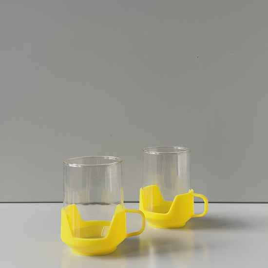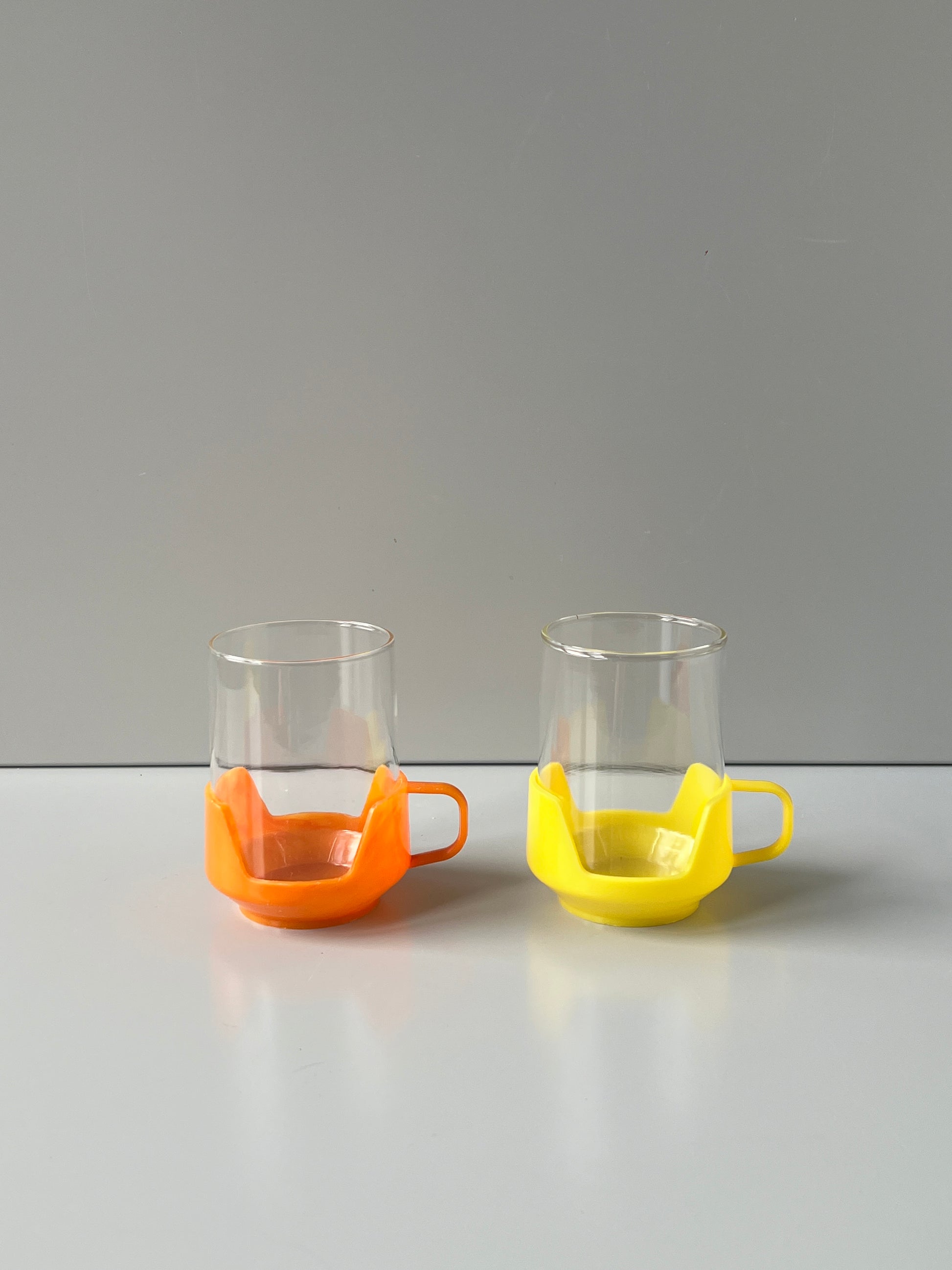 Zur beliebten SUPERFEST-Serie gehörten auch Teebecher, die mit Halterungen aus Kunststoff in verschiedenen Farben erhältlich waren.